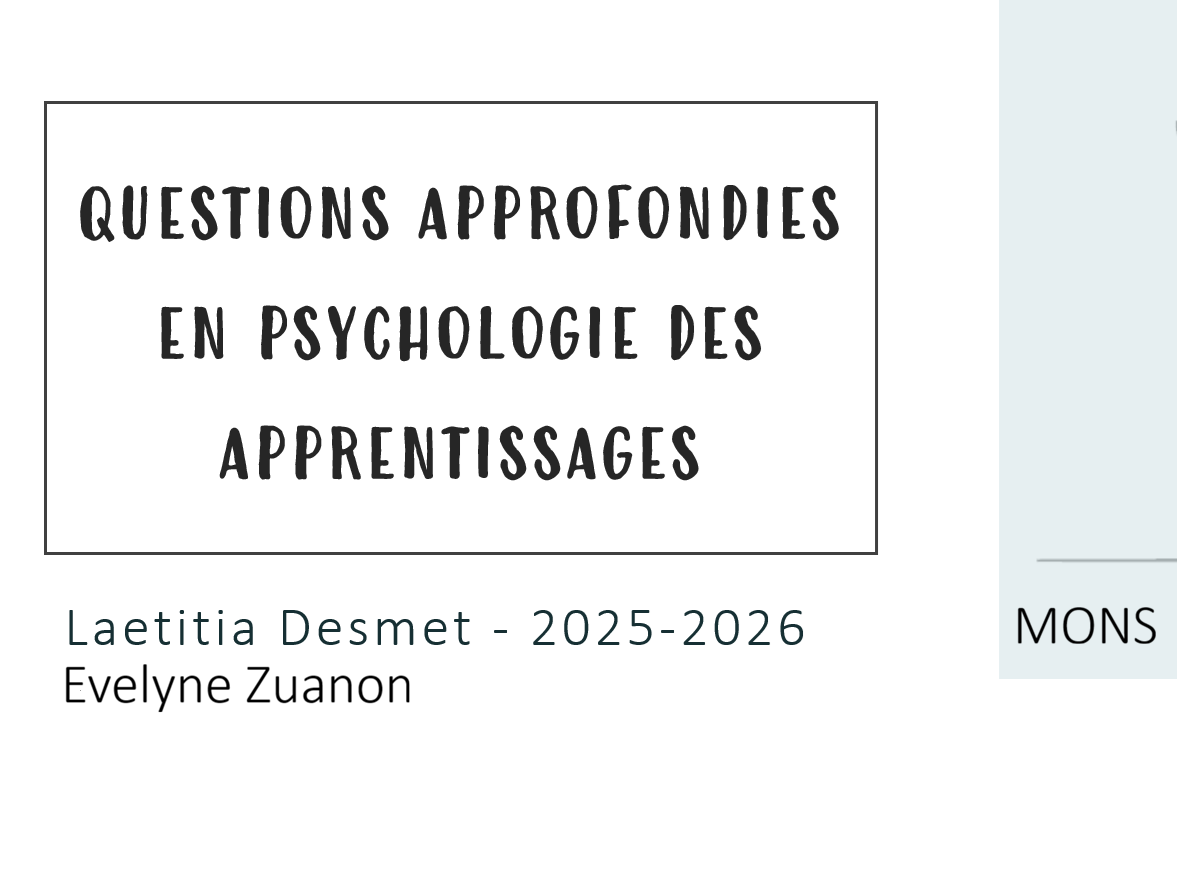 [25-26] Psychologie des apprentissages (MEDB2321)